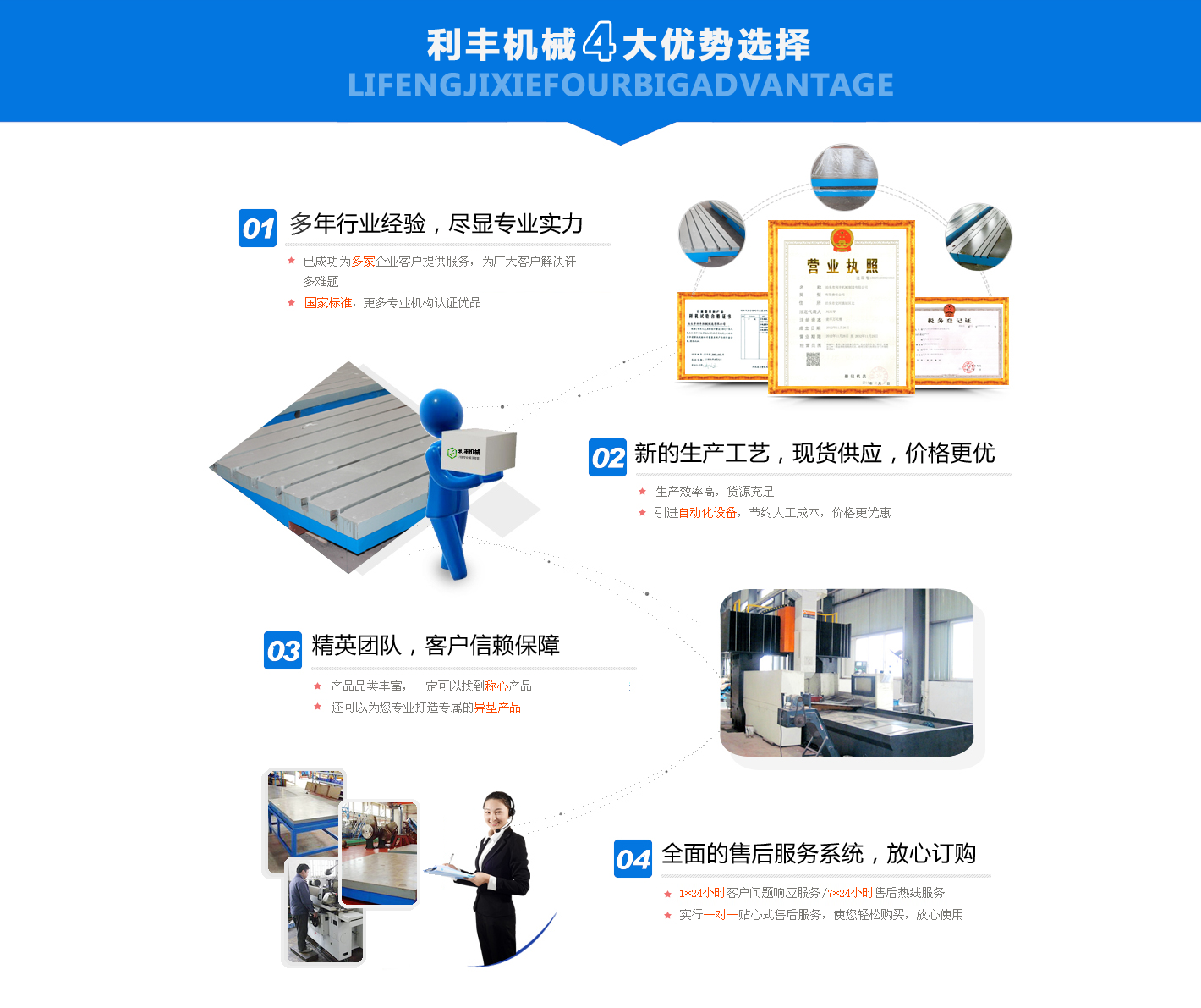 泊頭市利豐機械制造有限公司是生產(chǎn)工具,量具的單位,地處河北省泊頭市。我公司生產(chǎn)的鑄鐵平板、鑄鐵劃線平臺、機床鑄件、大理石量具等量具,具有設計合理、結(jié)構穩(wěn)定、使用壽命長等特點,廣泛用于機械加工、工具車間、裝配車間、機(檢)修車間、計量室及精密加工的檢驗、測量和研究。熱忱歡迎_兄弟廠家朋友前來我公司參觀考察合作,在互惠互利的基礎上,攜手共進,共圖發(fā)展。